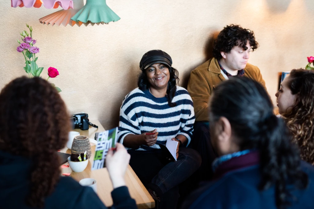 Anders dan gepland kwamen enkele bewoners en opbouwwerkers op Valentijnsdag samen bijeen in het museum café Thús van het Fries Museum. Het Princessehof museum werd tijdelijk gesloten door een inbraak. Toch stond dat een feestelijk samenkomen niet in de weg. Tussen de gebakjes en rode rozen kwam het gesprek op gang tussen de deelnemers van de wijken Bilgaard, de Vrijheidswijk, Camminghaburen, Heechterp-Schieringen en Oud-Oost.