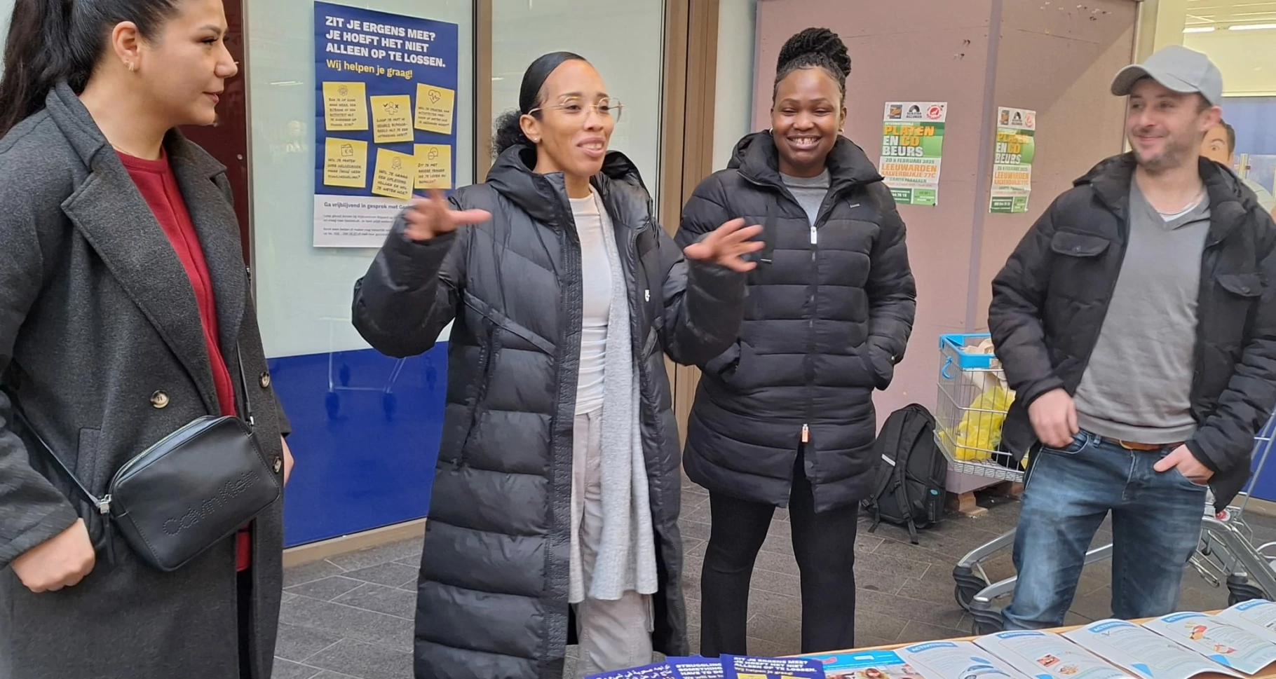In twee groepen gingen de genodigden vervolgens in een mini-tour door de wijk. Eerst naar het winkelcentrum, waar ervaringswerkers en vrijwilligers via een kraampje met koffie, fruit en flyers eens in de twee weken contact maken met wijkbewoners. Met tijd, aandacht en een luisterend oor komen er volgens hen altijd vragen los en maken ze bewoners attent op activiteiten en ondersteuning vanuit het wijkcentrum. Zo is er een mogelijkheid voor jongeren om via het zakgeldproject klusjes in de wijk te doen, zo vertelt een van hen. Een andere ervaringsdeskundige pakt af en toe zijn laptop erbij om eenvoudige problemen op te lossen, te helpen met formulieren. Als het nodig is, kan ook een andere samenwerkingspartner zoals Amaryllis worden ingeschakeld. “Er is altijd wel ergens een oplossing.”